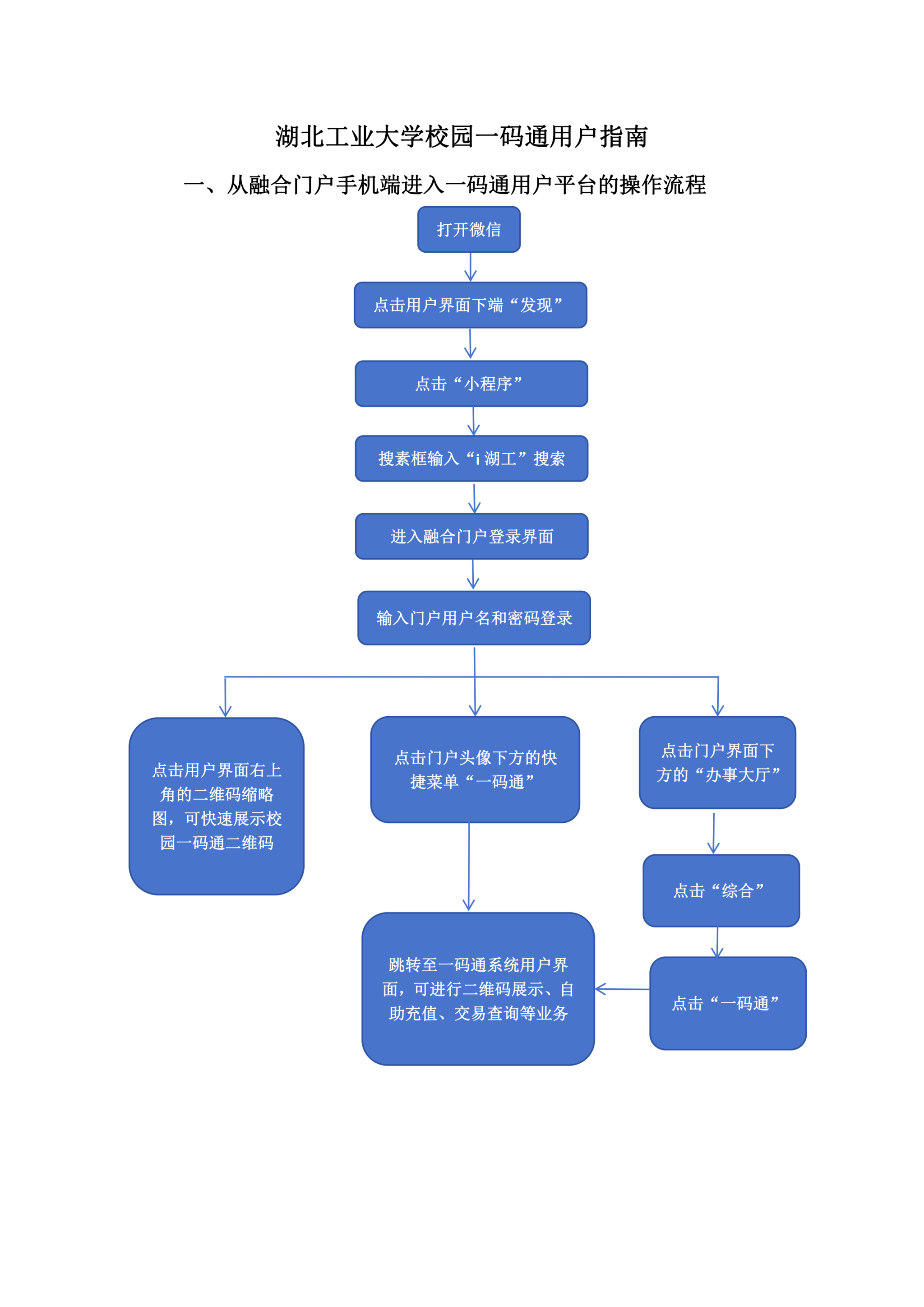 1、融合门户手机端:搜索“i湖工”微信小程序,登录认证后进入学校融合门户小程序,点击右上角二维码图标即可用码。